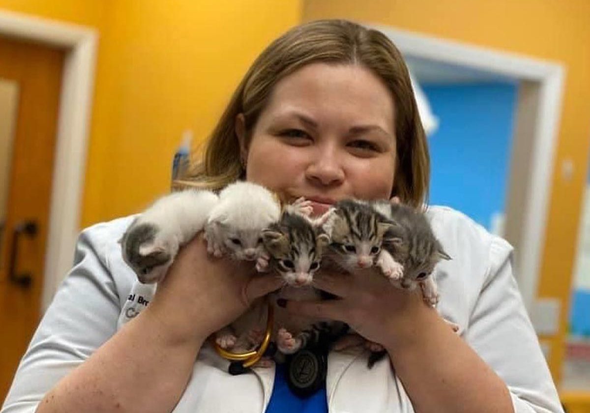 Doctor Smiling And Holding Many Kittens In Hands
